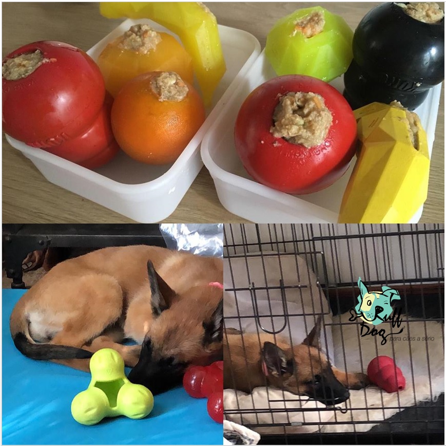 Obrigada à Patrícia Varela, fã e “croma” de canine enrichement pela super fotografia dos brinquedos recheados.