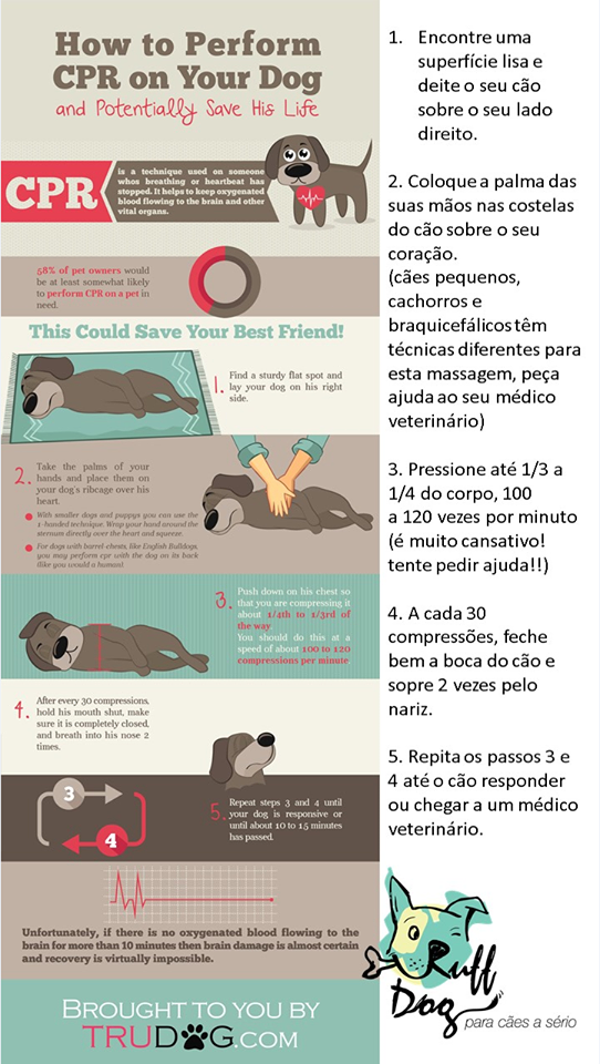 5. Repita os passos 3 e 4 até o cão responder ou chegar a um médico veterinário.